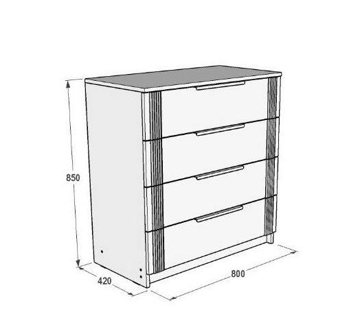 Комод Ольга 6. Корпус ЛДСП, фасады МДФ. Размеры 850х800х420 мм. Стильный оттенок, 4 вместительных ящика, надежная фурнитура. Модульная серия — соберите спальню под себя.