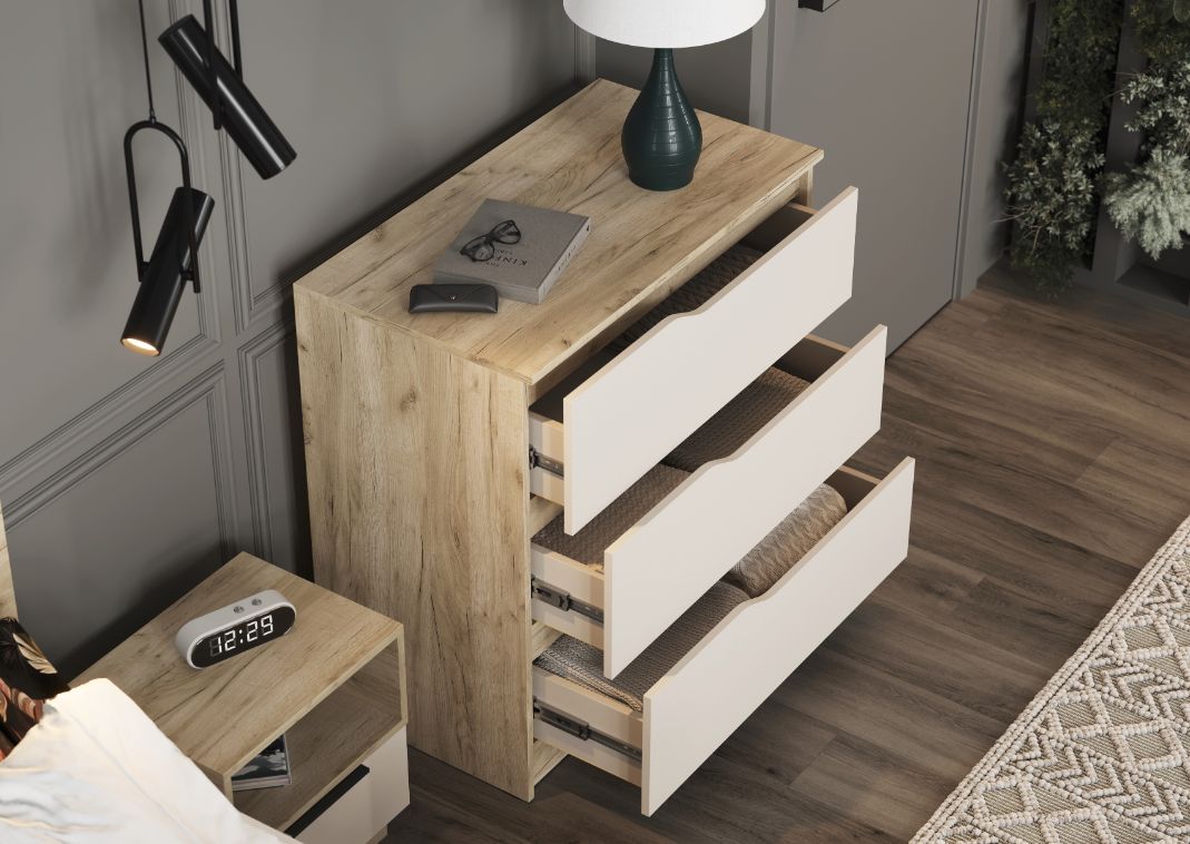 — Декоративные планки, выполненные в цвет корпуса комода, создают гармоничный внешний вид и позволяют удобно брать за фасад при открытии.